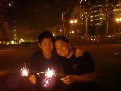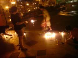 after the movie, baobeii and i came back to my house and then went over to somewhere around my neighbourhood for some firecracker playing session with my sisters, cousins and tutu.